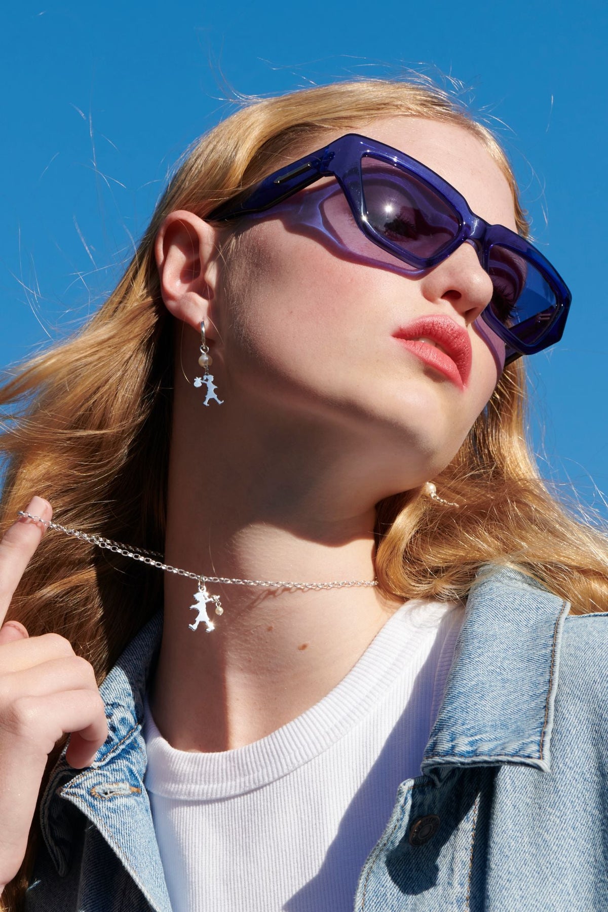 Suspended beneath lustrous white freshwater pearls, a duo of sterling silver Runaway Girls march forth in search of adventure to create an elegant pair of hoop earrings perfect for those with an adventurous spirit.